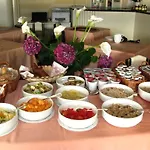 Çeşitli yemeklerin sunulduğu açık büfe kahvaltı her gün servis edilir.